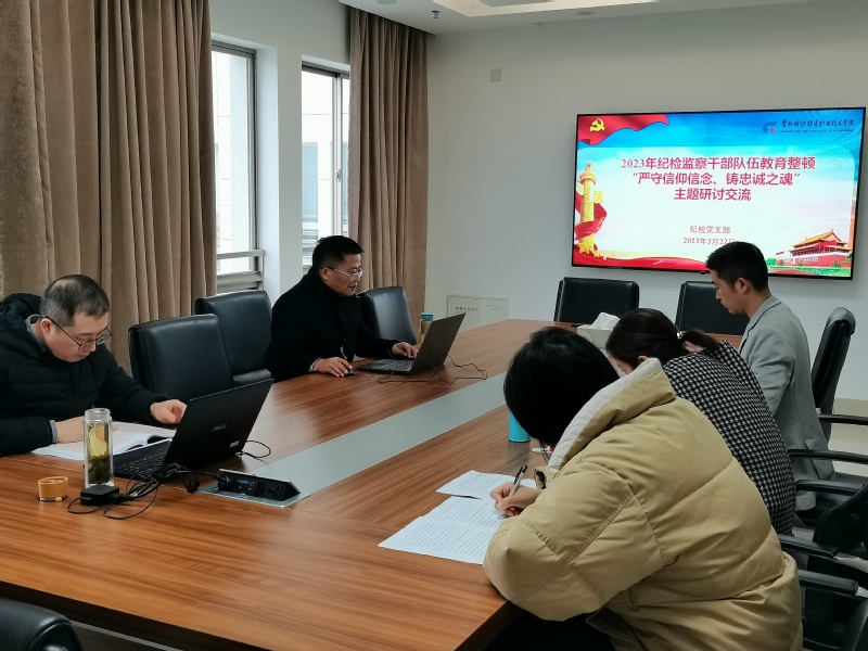 3月22日,根据省纪委教育整顿工作部署,纪检党支部党员自学党的二十大报告、《习近平谈治国理政》等材料,围绕“严守信仰信念、铸忠诚之魂”主题,结合学校实际,就如何以强化自身思想建设,从纪检工作角度推动学校高质量发展开展研讨交流。